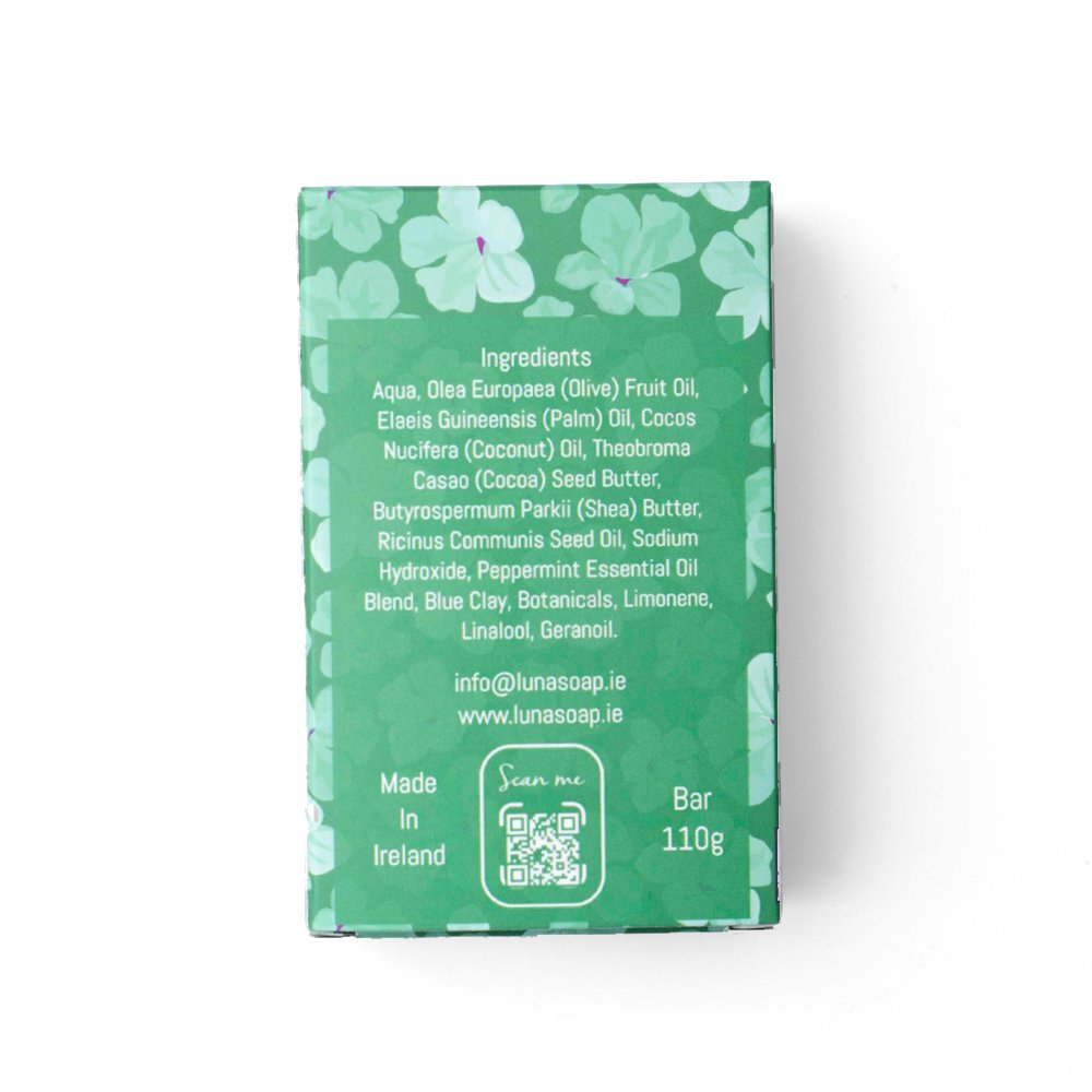 Infused with blue clay and kaolin clay, this bar helps draw out impurities while leaving the skin soft and balanced. Finely ground oatmeal adds gentle exfoliation, perfect for soothing dry or irritated skin. The refreshing essential oil blend of rosemary, spearmint, and peppermint delivers a cooling, herbal aroma that leaves you feeling clean, clear, and energized.