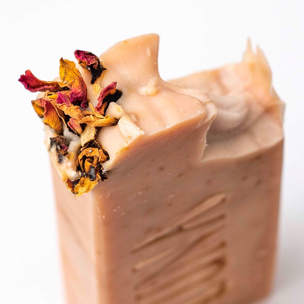 A gentle cold-process soap infused with rose petals and soft floral botanicals. Designed to cleanse delicately, hydrate the skin, and leave a natural glow.