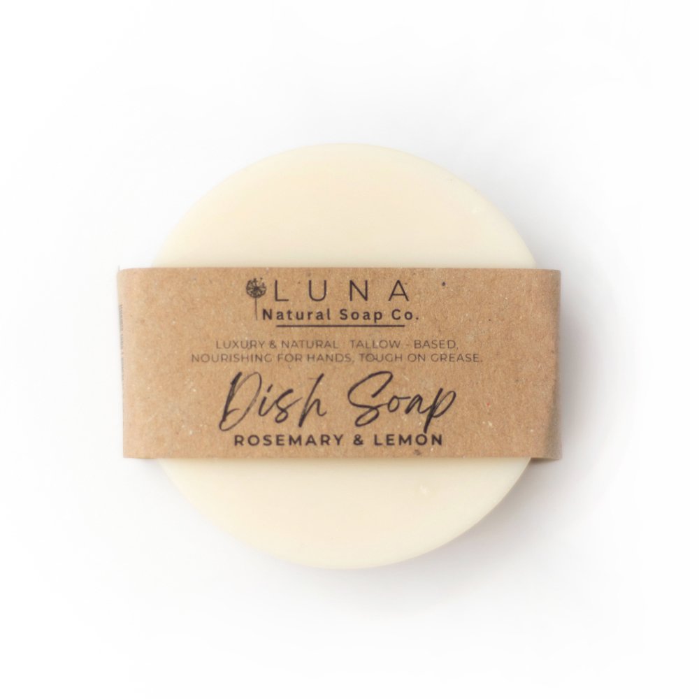 Our Tallow Dish Soap is a solid dish soap made using traditional methods and simple ingredients that cut through grease without relying on synthetic detergents.