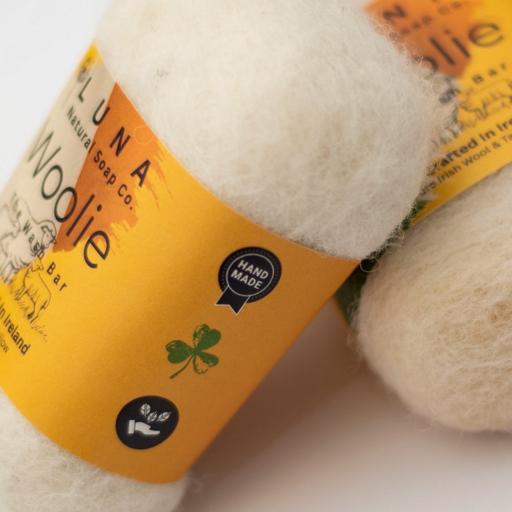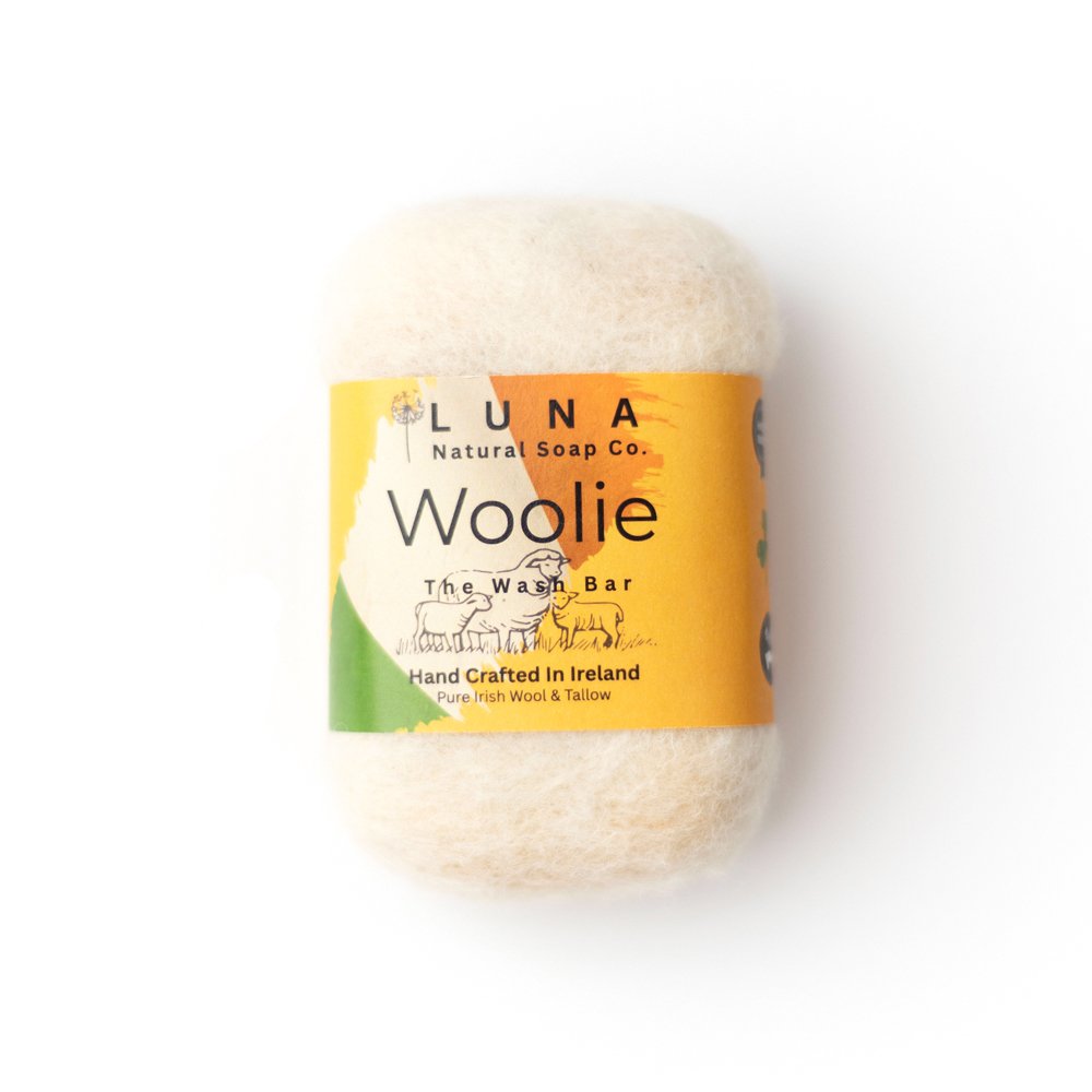 Woolie the Wash Bar gently cleanses sensitive skin using local organic grass fed tallow, natural oils, Kilbeggan oats, Mooney’s organic honey, wrapped in pure Irish wool.